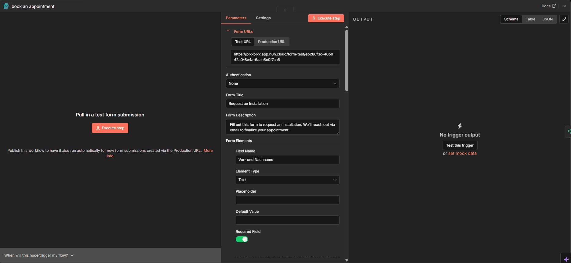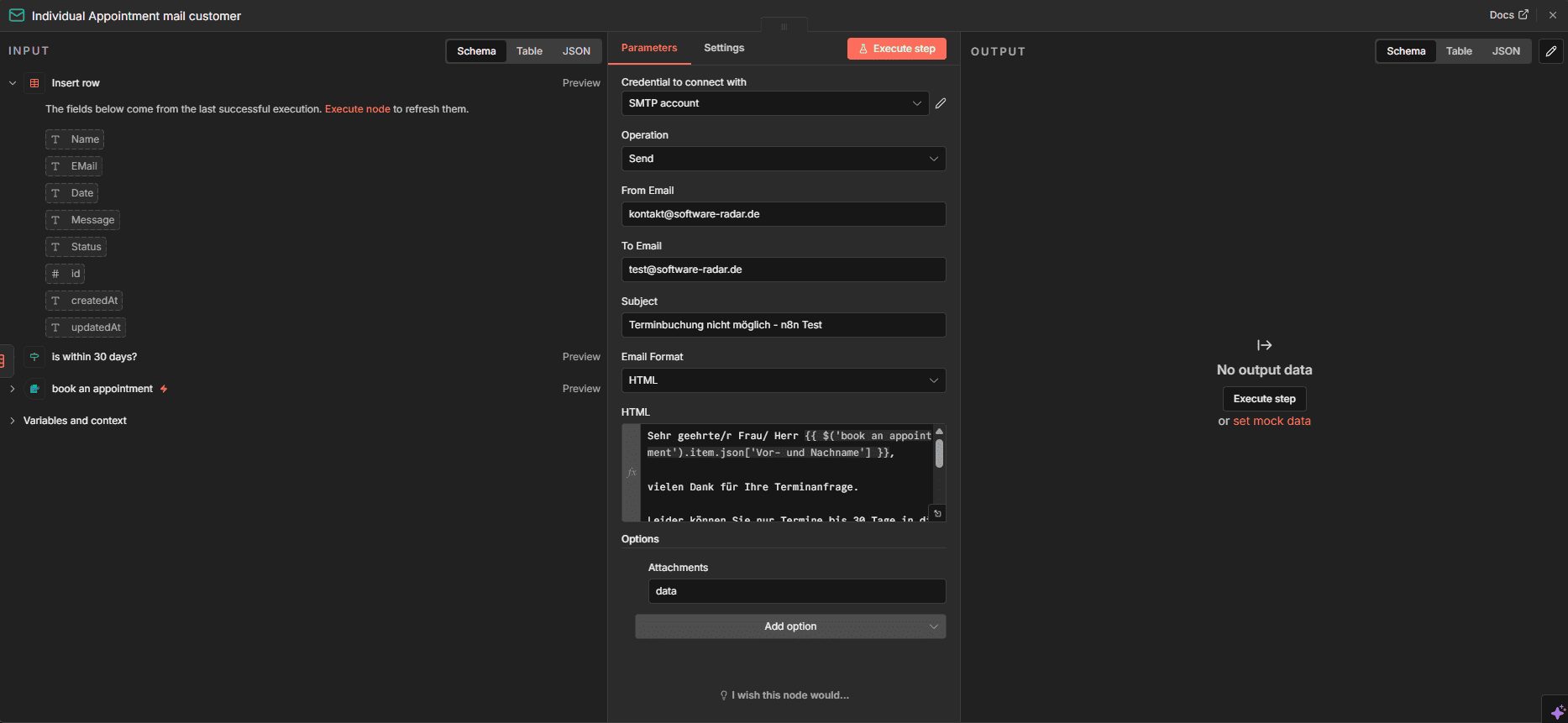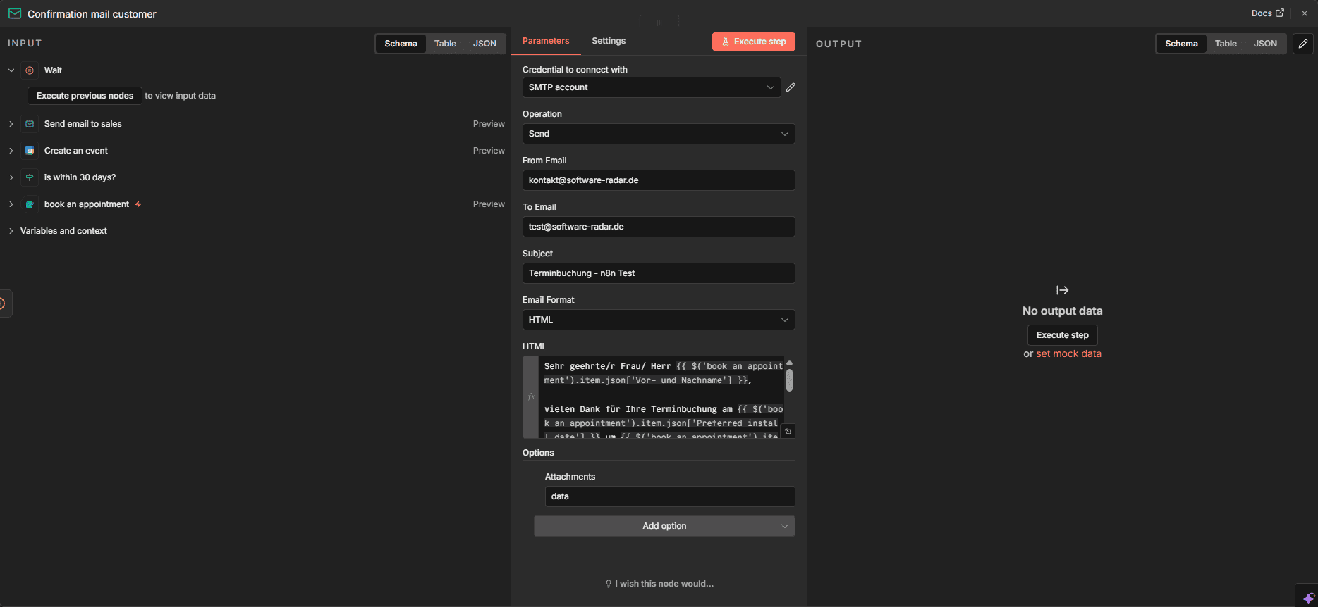 Unser Test-Workflow (Terminbuchung):
