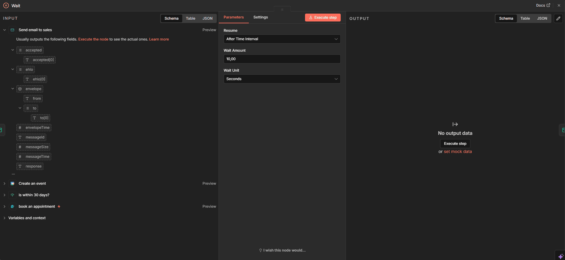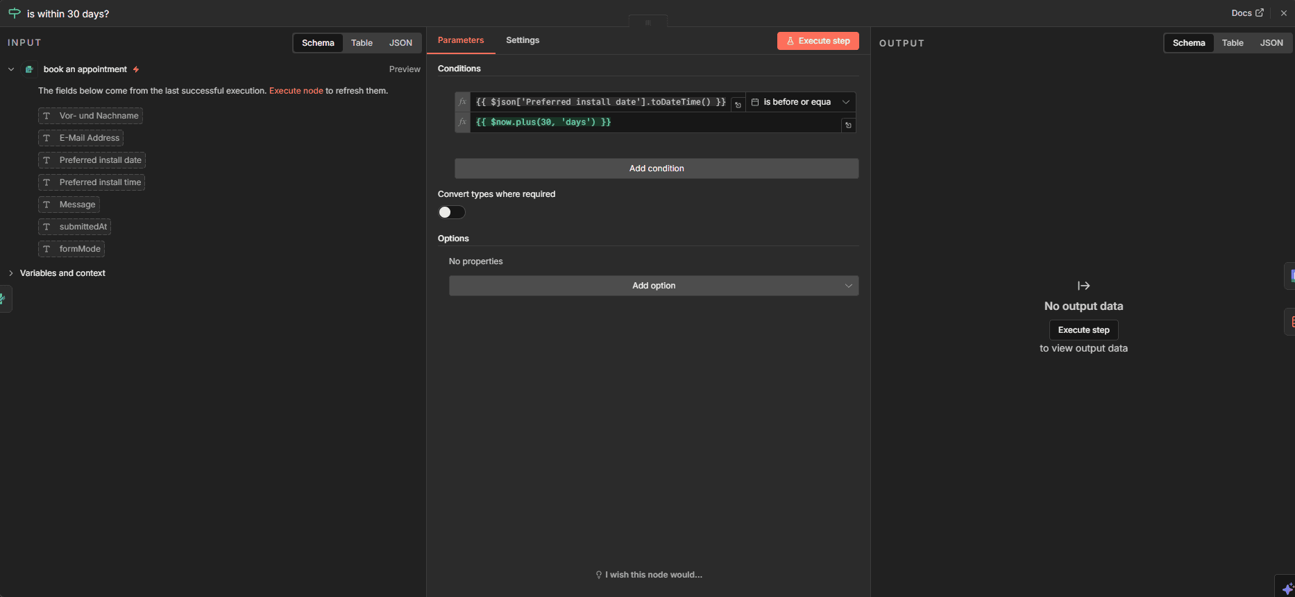 Hier glänzt n8n besonders. Jeder Node zeigt Input und Output separat an. Bei Fehlern sehen Sie exakt, welche Daten reinkamen und wo es hakte.
